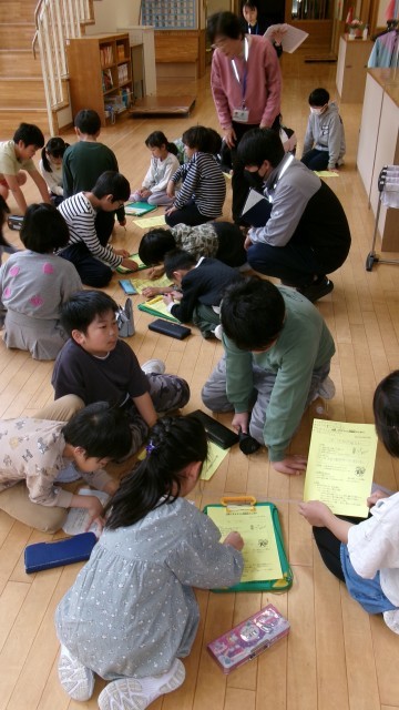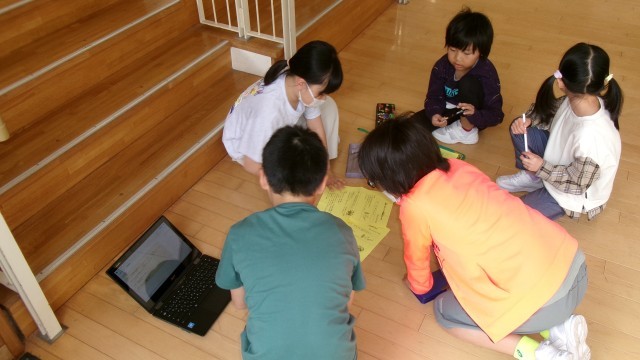 今日の朝活動に、明日のスマイル班遠足の最終打合せを行いました。高学年の子供たちを中心に、各班で「班の目当て」と「班遊びの内容」について確認しました。