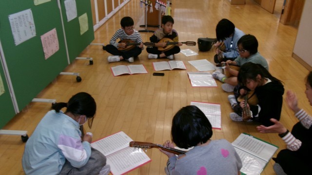 各パートに分かれて練習です。みんな上手に演奏できるようになろうと、真剣な表情で取り組んでます。