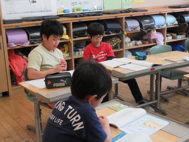 「連休、早かったね。」「うん。早かったね。」と口にしながらも、算数科の折れ線グラフと棒グラフの学習に向かう4年生たちでした。「折れ線グラフと、棒グラフが合体しとる!」と、驚きの声。そんな子供たちの素直な感性が素敵です。