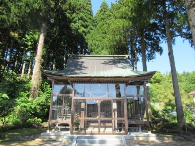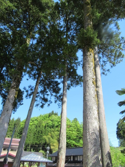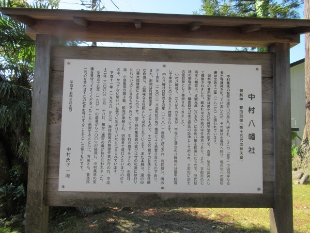 山田の案山子のお店を目指して歩いている途中に、中村八幡社から出てくる子供たちに会いました。早速、参拝させていただきました。杉がすっくと立ち並ぶ中、お社がありました。静寂が漂っておりました。