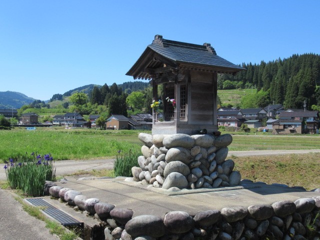 歩いていて、本当に気持ちのよい一日でした。抜けるような空の青さが、山田の様々なものをより引き立てます。山田の案山子のそばの田んぼは、田植えが終わっていました。そろそろ蛙の声もにぎやかになる季節です。