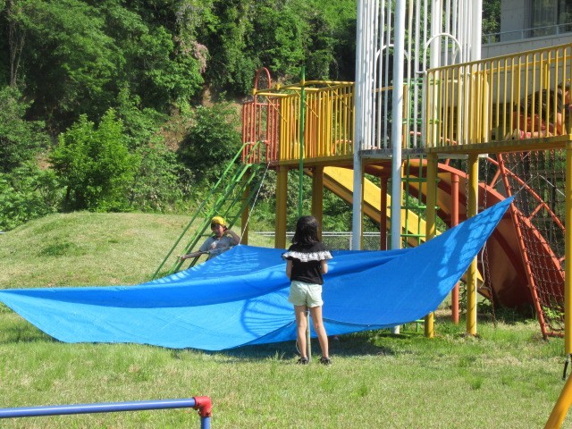 5限、実際に芝生広場に出て、「森の家づくり」に向けて練習する子供たちの姿がありました。声をかけ合い、助け合っていました。本番に活かせるといいな。