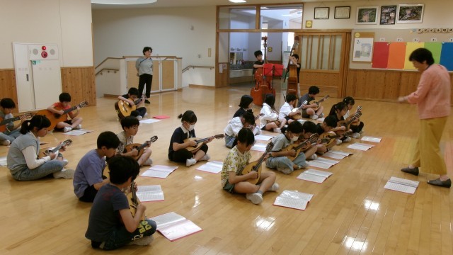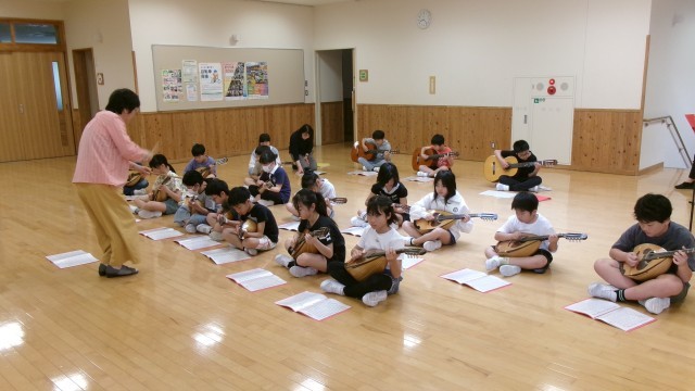 上学年はマンドリン練習です。「いつも何度でも」を全員で合わせて練習しました。先生からアドバイスを受けながら、息の合った演奏を目指しています。