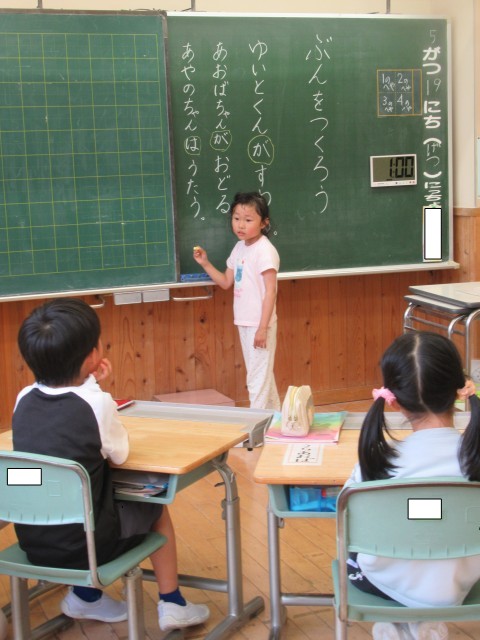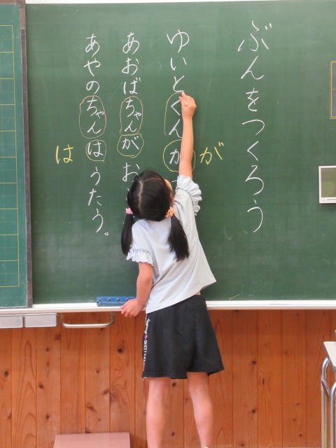1年生は、文の型について学んでいました。自分の気付いたことをのびのびと発表していました。課題が終わると、chromebookでドリルを進めていました。
