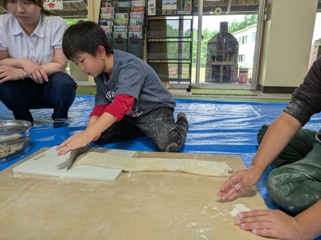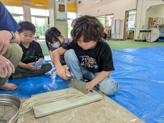 混ぜて、こねて、こねて、こねて、のばして、切ってようやくうどんらしくなってきました。