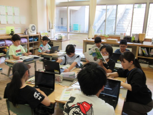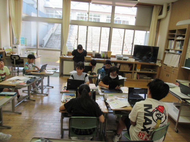前回、各自が決めた課題についてchromebookを使って調べ学習をしていました。課題追究の力だけでなく、情報収集、情報処理する力も高めています。