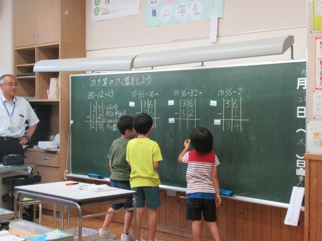 学校運営協議会委員の皆様が各教室をまわられました。子供たちには、顔見知りの委員の方がいらっしゃって、のびのびと学ぶ様子が見られました。