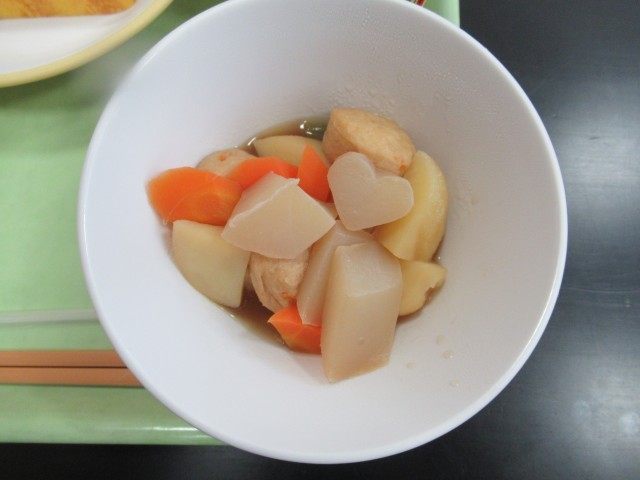 厚焼き玉子は甘口です。関東だきのこんにゃくが短時間の調理にもかかわらず、味しみしみでおいしかったです。