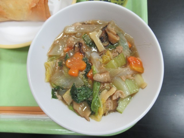 給食の春巻きは、どうしてあんなにパリッパリッなのか、知りたいです。八宝菜は、シャキシャキ野菜がたっぷり入っていて、野菜が苦手な子供でも、おいしい餡に絡めて食べられたんじゃないかと思います。おししい給食をありがとうございました。