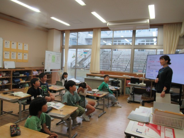 5限目、担任が出張で不在のため、5年生の先生が代わりに出てくださいました。