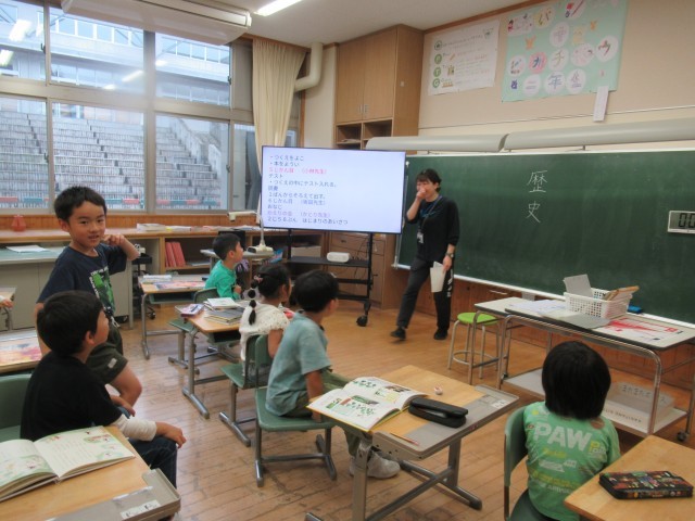「歴史」や「新幹線」という熟語が板書されましたが、子供たちは答えることができていました。