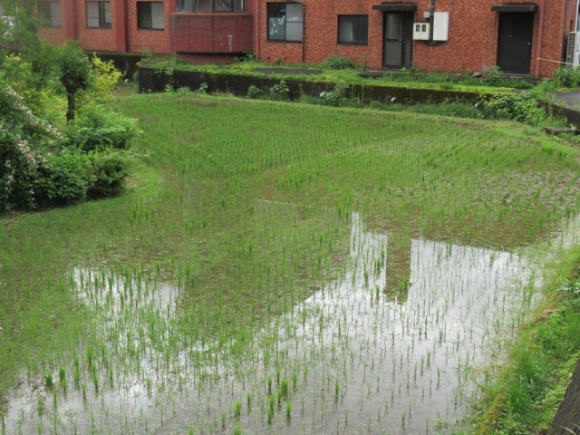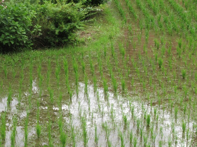 雨上がりで、田んぼの苗の緑が濃くなったように感じました。