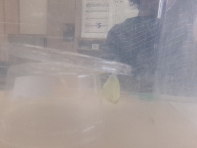 さなぎからチョウが羽化しました。さなぎから出てくる瞬間をみんなで見ることができました。