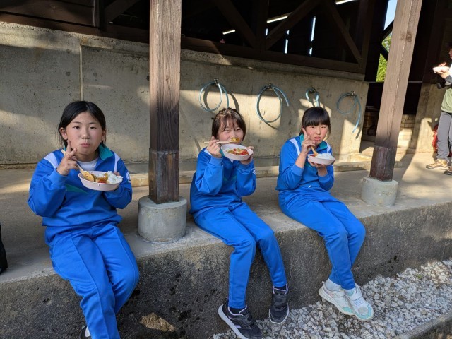 団の仲間で協力し、ご飯ふっくらのおいしいカレーライスが完成しました。