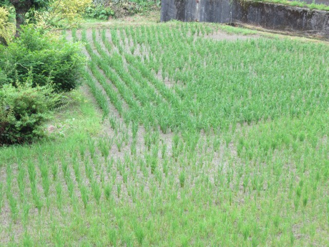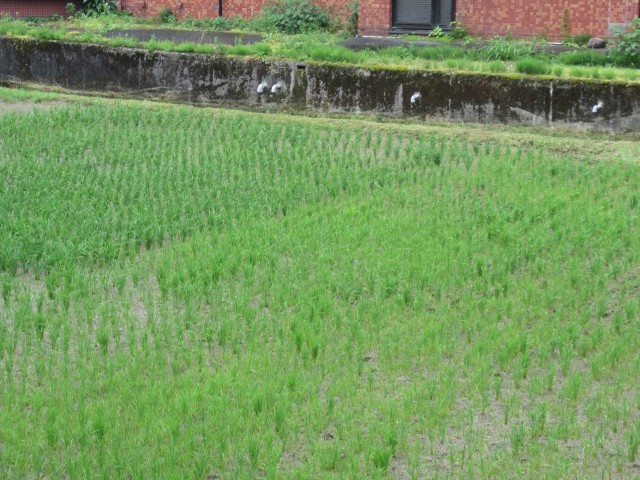 朝からの雨、梅雨入りでしょうか。今朝は、苗の緑が一層濃く感じられます。