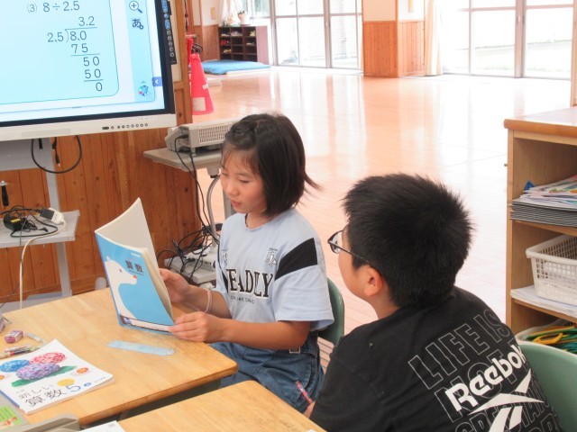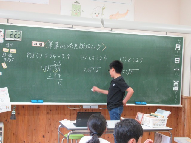 算数科の時間、小数の筆算の仕方について、ペアで説明し合っているところでした。