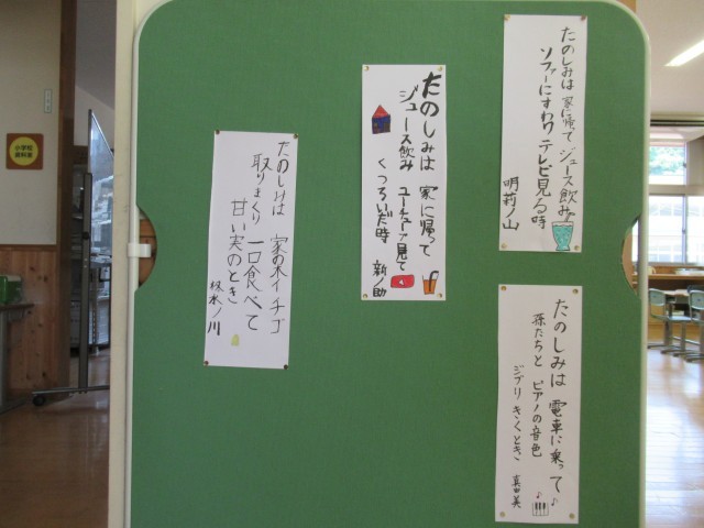 6年生教室前廊下に、「たのしみは」から始まる短歌が掲示されていました。