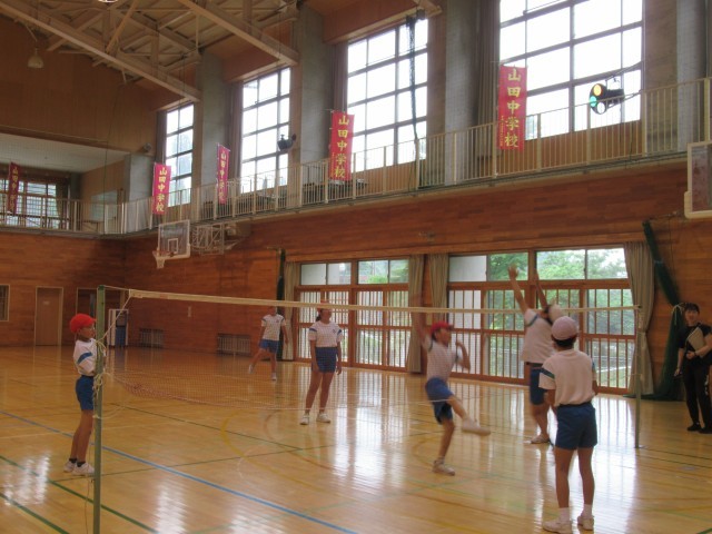 5・6年生が、キャッチバレーボールを楽しんでいました。私が体育館を後にするまでは、チーム白が優勢でしたが、その後はどうなったかな?