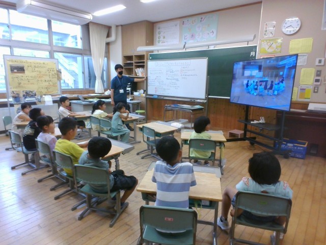 先週行われた保育所さんとの交流会の振り返りをしています。当日のビデオを見ながら自分たちの素敵なところをたくさん見つけました。保育所さんのことを一番に考えて動くことができた1・2年生。次の交流会も楽しみです。
