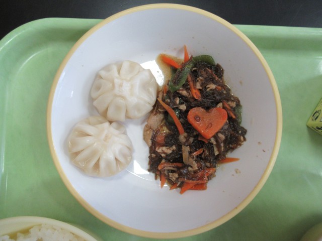 もずくのチャプチェに、ハートが入っていました。子供たちは、いくつ見つけられるかな?