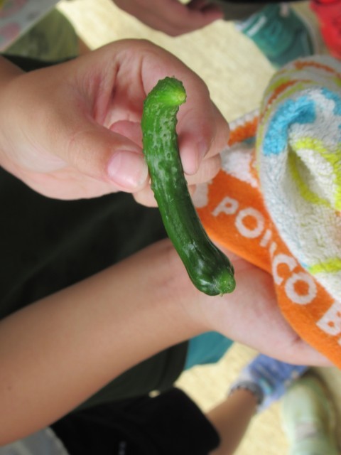 翌日、ミニキュウリの食べ方を尋ねました。細かく切ってサラダに混ぜて、みんなで食べたそうです。絶対おいしい!