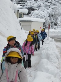 まとまった雪が降った今朝、冷蔵庫内のような冷たい体育館で、子供たちは、大繩跳び...
