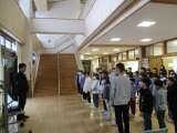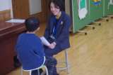 明日の終業式で、がんばり発表をする子供たちが出入りの練習をしていました。返事の仕...