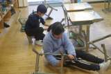 教室の掃除に取り組んでいます。これまで使ってきた机や椅子の脚の裏まできれいにして...