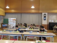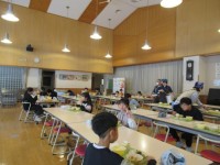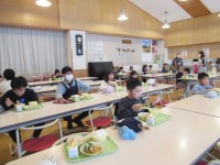 感染防止対策を講じての給食時間も4日目。今日は、選択献立でした。