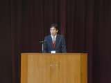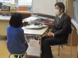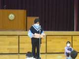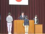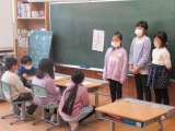 1・2年生合同学活で、2年生から、校長先生、教頭先生、小宮先生、1年生に向けて...