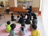 1,2年生で図書館利用について学習しました。司書の大場さんに読み聞かせをしてい...