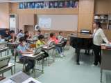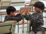 曲のリズムにのって、友達と手を合わせます。上手くいくときと、タイミングがずれると...