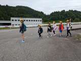雨の中でも楽しく次のチェックポイントを目指します。 山田公民館でもスマイルおやつ...