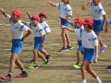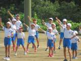 赤団、白団の全員による、エールの練習です。高学年の子供たちが、しっかりした声を出...