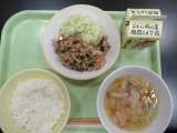 今日の献立にあった「豚キムチ丼」。子供たちは、ご飯と一緒にもりもり食べていました...