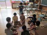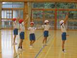 体育の時間に、音楽に合わせて自由に体を動かしてみました。自分なりに手を振ったり...