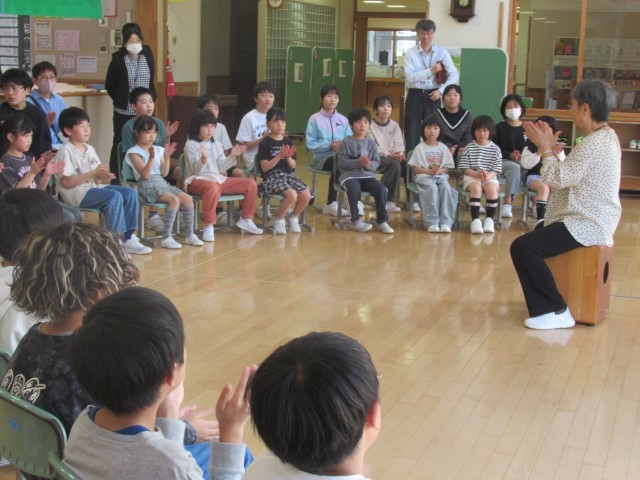 朝活動の時間には、1・2年教室で紙芝居の読み聞かせを行いました。1・2年生のみん...
