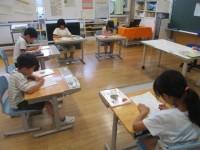 国語の様子です。「てがみをかこう」の学習で、1年生になってできるようになったこと、つたえたいことを文にして、親戚に手紙を書いています。年末の時期に合わせて、年賀状を用いました。