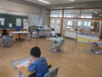 算数の様子です。先日から時計の読み方を学習しています。10分刻み、5分刻みと練習をし、1分刻みも読めるようになってきました。時計を読めるようになると、生活の中でも行動によい影響がうまれそうです。