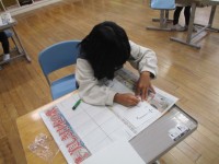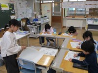 書写の様子です。書初大会に向けて、週に2回書写をしています。ずいぶんと字形も整ってきました。練習の成果を掲示してありますので、懇談会でご覧ください。