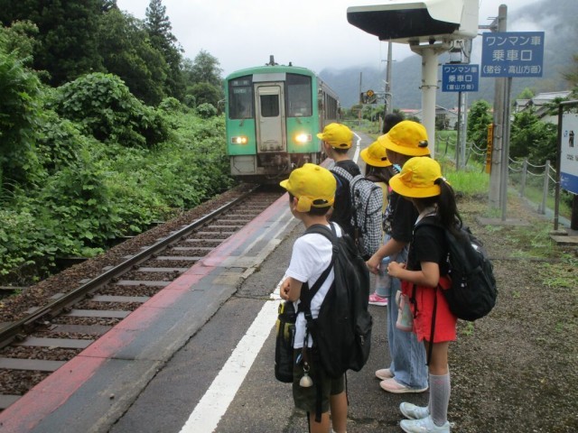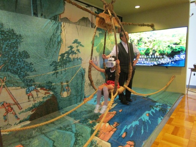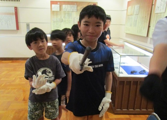 総合的な学習の時間「つなごう!神通峡の宝」の学習で、校外学習に行きました。猪谷プールの見学の後、猪谷関所館に行きました。館長さんから関所や江戸時代の神通峡の話を聞いた後、「籠渡し」のVR体験をしました。江戸時代の役人が使っていた十手も持たせていただくなど、貴重な体験ができました。