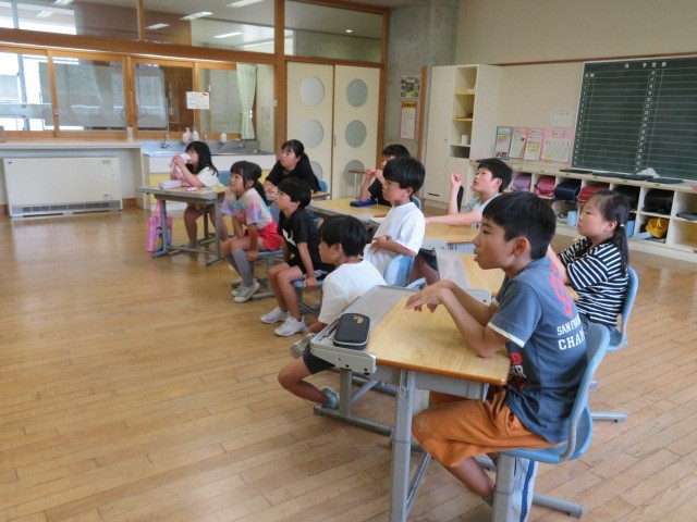 今日は、神通峡のすてきな場所や校区の祭りで撮った写真を子供たちに見せてくださいました。青海さんから「自分たちの住んでいる所には、こんなすごいものがあること」「自分のふつうは、ほかの人には特別かもしれない」という2つのポイントを教えていただきました。