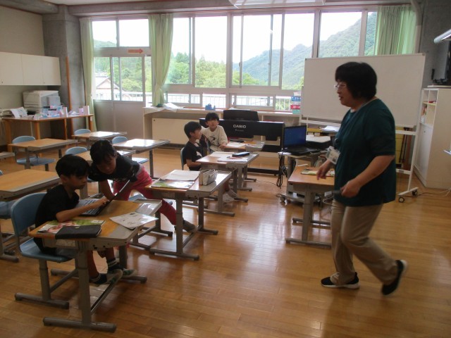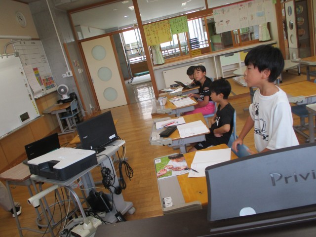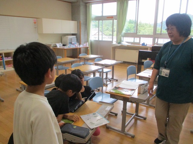 3年生は、理科の学習で、どんなところにどんな昆虫などの動物がいるのかを思い出したり、調べたりしています。生き物が大好きな3年生、友達と相談したり、たった今聞こえてくるセミの鳴き声を聴き分けたりして、昆虫に思いを馳せていました。