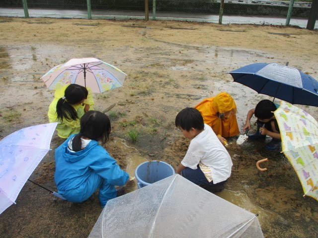 その日に合わせてかさ、ながぐつ、かっぱなどをもってきて