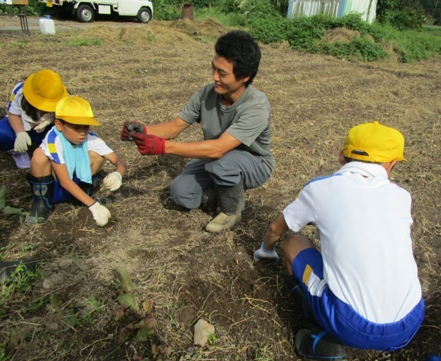 総合的な学習の時間「つなごう!神通峡の宝」の学習で、地域の特産品であるらっきょうの植え付けを体験しました。地域の方に植え方を教えていただき、丁寧に植えました。すべて手で植えるため、ひとり一畝植えるだけで、大変だったようです。