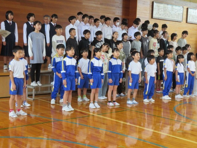 11月1日(土)に行う学習発表会に向けて、初めての練習でした。曲は、「次の空へ」です。小学生はソプラノパートとアルトパートを担当しており、本日初めて中学生のテナーパートと合わせました。3つのパートで歌うと歌にもより深みがでて、小学生だけでは表現できない素敵な歌声になりました。あと3回練習する機会がありますので、気持ちの盛り上がりと共に美しい歌声を響かせたいと思います。