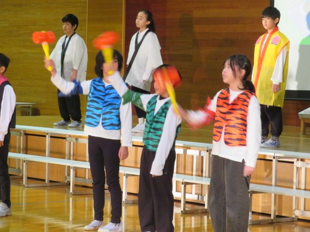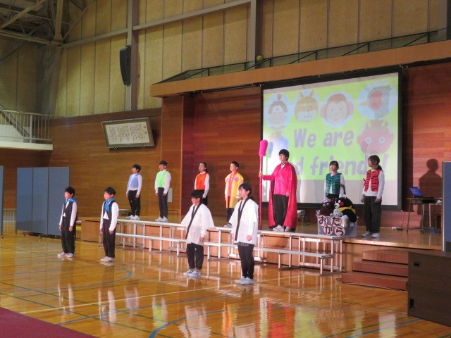 プログラム4番5年国語科・外国語科「ももたろう~We are  good  friends!~」です。