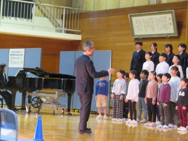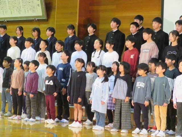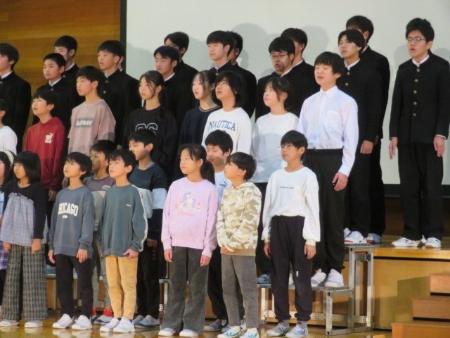 小学生・中学生合同合唱は「次の空へ」でした。低学年の子供たちには、少し難しい曲ではありましたが、中学生のテノールパートが加わることで、3部合唱の美しいハーモニーを披露することができました。