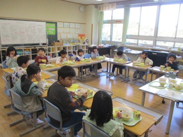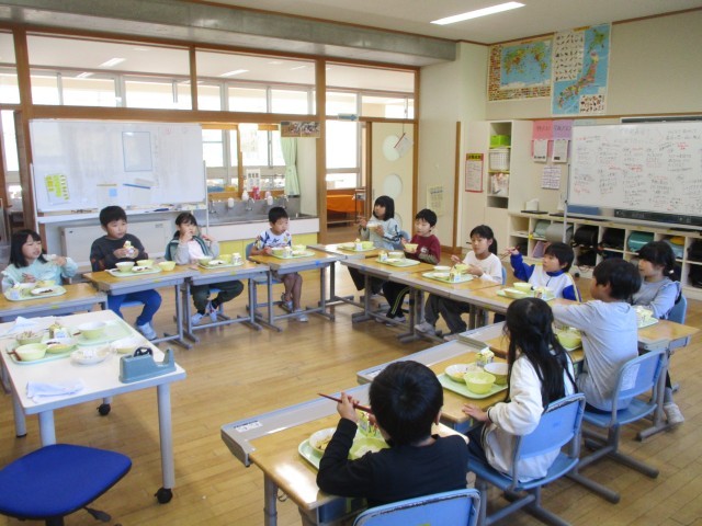そのため、給食は1・2年生で同じ部屋で食べました。