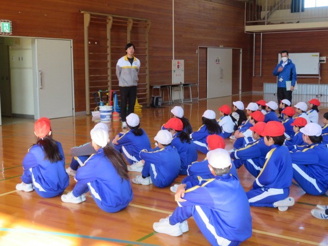 富山市スポーツ協会よりスポーツ指導員をお迎えし、全校児童で投力を高める運動を行いました。